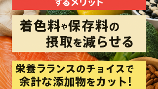 栄養バランスの取れた食事 栄養バランスの取れた食事をするメリット:着色料や保存料の摂取を減らせる 1. はじめに現代社会において、私たちの食生活は大きく変化しています。コンビニエンスストアやスーパーマーケットには、色とりどりの加工食品が並び、忙しい日常生活の中で手軽に食事を済ませることができるようになりました。しかし、この便利さの裏側に... 2025.08.08 栄養バランスの取れた食事生活習慣